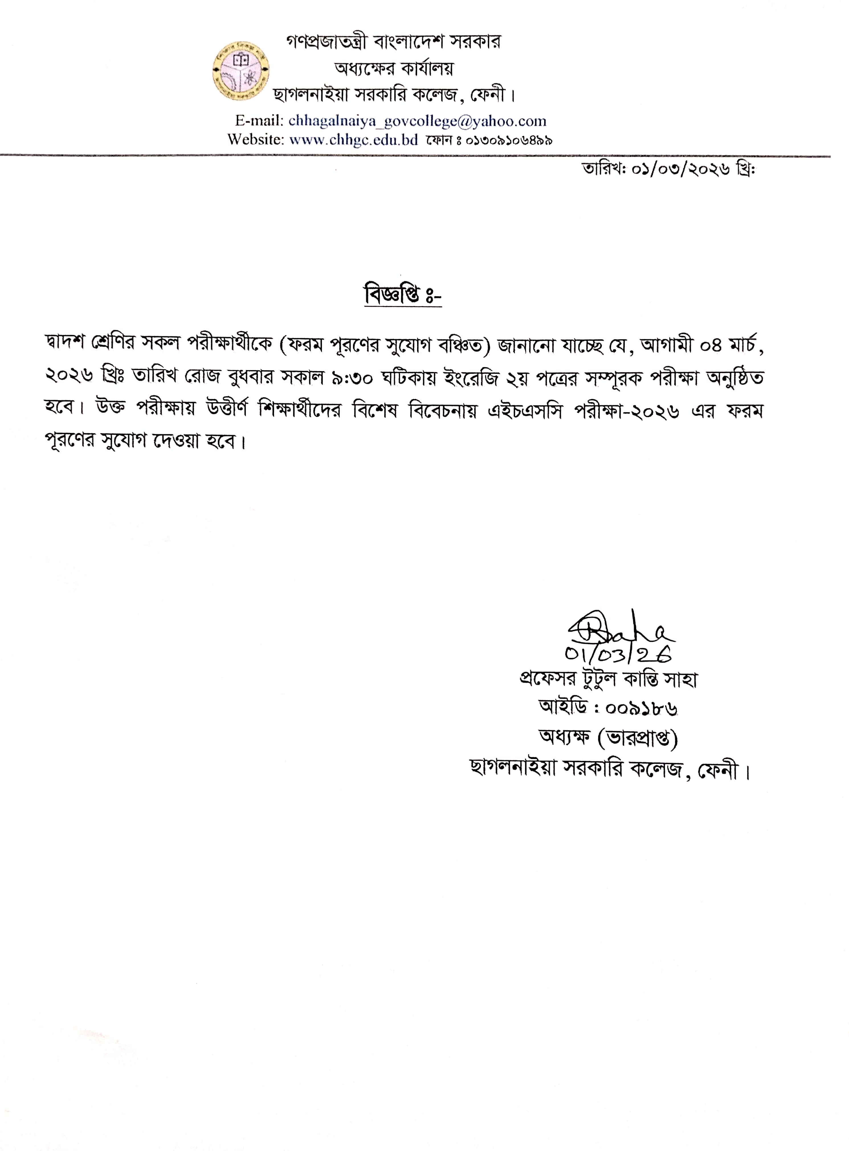 - দ্বাদশ শ্রেণির সম্পূরক পরীক্ষার নোটিশ।